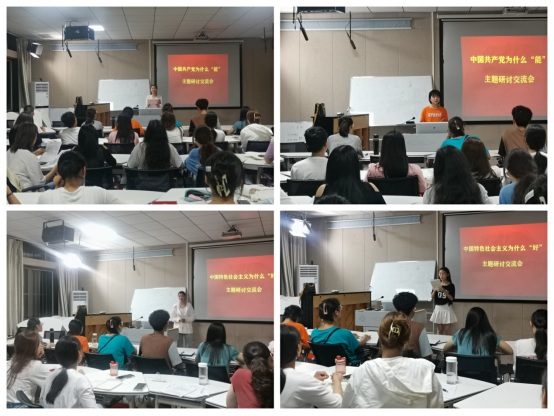讨论会上,18小教易钰琇同学结合中国共产党带领全国人民共同抗疫的事迹,从疫情防控和有序恢复经济等角度,深刻理解中国共产党为什么’”;20级学前教育秦凤从创新指导思想、以人民为中心、解放思想实事求是、勇于自我革命到从全面严治党等方面,从对党的性质的认识来理解中国共产党为什么“能”;在“中国共产党为什么’”的问题上,20级教育2张旭冉同学表示,从中国历史和发展道路都证明:正是中国共产党有远大理想追求,有严密有力的组织体系和组织纪律,有与时俱进的理论品格以人民为中心的发展思想等一系列优秀特质,才使中国共产党能带领中国人民取得巨大成功19小教贾如媛从好在方向正、好在道路宽、好在聚力强、好在气场大四个方面阐述了中国特色社会主义为什么“好”;19小教秦欣宇谈到中国特色社会主义为什么“好”,在其以人民为中心,创造性满足人民对美好生活的需要。精准扶贫解决了7.4亿人口的贫困问题,扶贫工作取得的胜利得到了世界的瞩目和赞许。