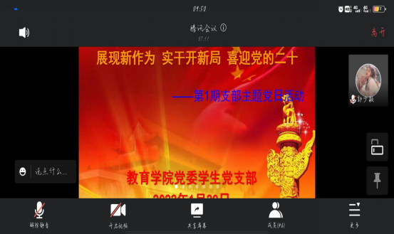 2022年1月20日,best365网页版学生党支部以腾讯会议形式召开1月主题党日,以“展现新作为 实干开新局 喜迎党的二十大 ”为主题。由支部书记郑珍同志主持。