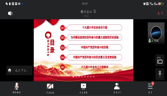 杨胜同志领学党的十九届六中全会精神,主要内容就是审议通过了《中共中央关于党的百年奋斗重大成就和历史经验的决议》。这是党的十九届六中全会的重要历史贡献,对于全党更加紧密地团结在以习近平同志为核心的党中央周围,进一步增强“四个意识”、坚定“四个自信”、做到“两个维护”,团结带领全国各族人民夺取新时代中国特色社会主义新的伟大胜利,具有重大现实意义和深远历史意义。