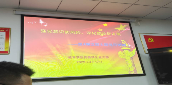 按照学校党委统一安排和上级有关工作要求,为推进学校支部主题党日活动持续深入开展,best365网页版党委学生党支部于4月17日开展“强化意识防风险,深化整改促发展”2022年第四期支部主题党日活动。