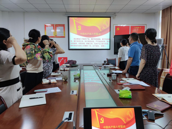 会前仪式中,全体党员重温入党誓词,学习了党章第九章,并积极缴纳了党费。