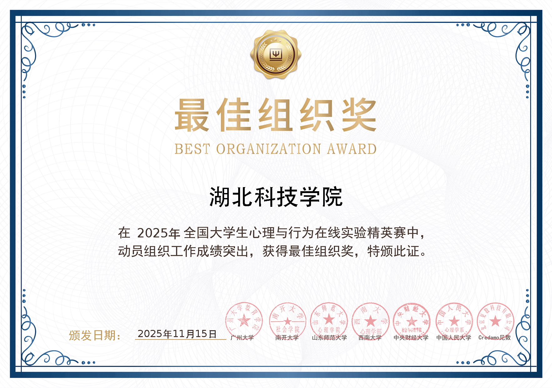 此次参赛,我校在团队奖、组织奖及指导教师奖上实现多点开花,充分展现了学校在应用心理学专业建设上的扎实成效,是深化教学改革、注重培养学生创新与实践能力的集中体现。优异的成绩不仅为学校赢得了荣誉,也标志着我校在创新型、应用型心理学人才培养方面迈上了新的台阶。