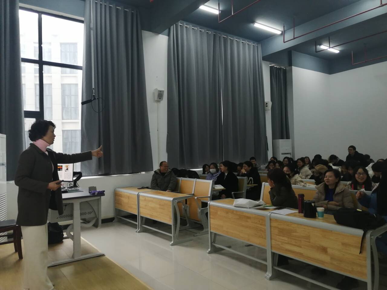 讲座伊始,汤教授启发学生思考:将来想做什么样的人?毕业以后的职业规划?将以怎样的职业素养去开启自己的幸福人生和成就自己的职业发展?她提出心理健康教育教师要拓宽自己的视野,构建健康生命、幸福生命教育新理念,遵循不同阶段学生认知发展规律,培养身心健康全面发展的社会主义建设者和接班人。