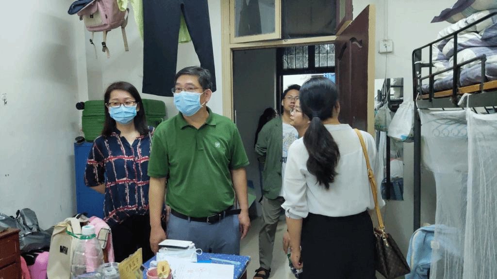 冒着细雨,迎着凉风,在这个秋风送爽的季节里best365网页版又迎来了一批新学子。被疫情笼罩的2020年,我们依旧在湖科如约而至。为看望新生宿舍情况,了解新生情况以及安抚新生离家的愁绪,9月13日晚8:00best365网页版徐蕾院长、黄知荣书记、袁尚会副院长、郑珍老师、娄强老师,各班班主任以及班助共同去看望新生。