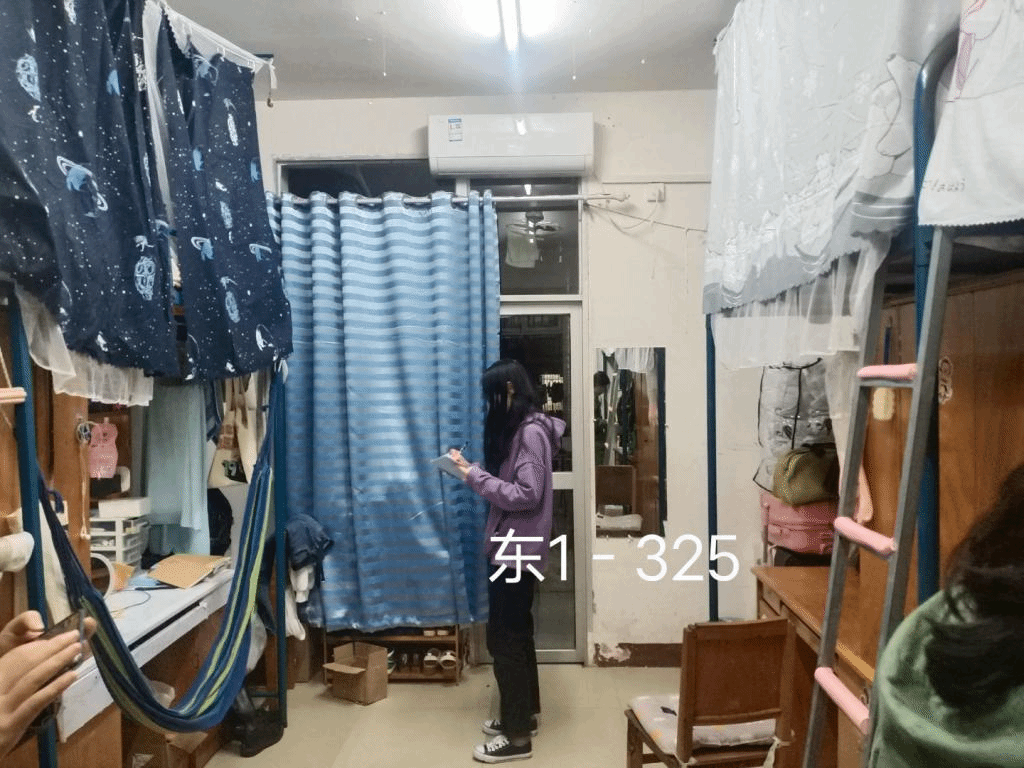 其次,志愿者在检查过程中发现,部分寝室阳台上会堆积物品,在志愿者告知阳台不可堆积物品后各寝室及时整改。此外,志愿者重点检查了各寝室的用电情况,暂无发现有违规用电的情况。