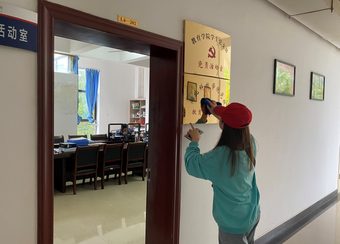 在活动过程中,大家分工合作,各司其职。大家分别对琴房、舞蹈房还有学生活动室进行了打扫,整个实践活动大概进行了一个小时左右。同学们都积极投身于劳动,秉承着为群众办实事的工作态度,认真地打扫院里的角角落落,使院办的风貌焕然一新,并得到了老师的鼓励和赞许。