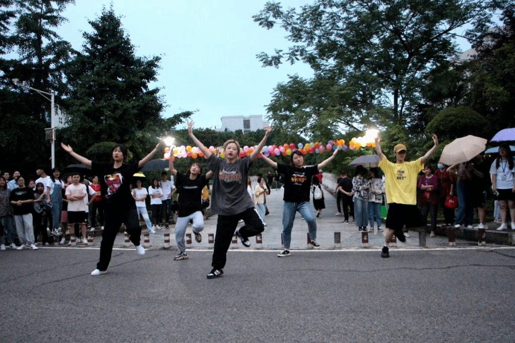 本次活动在主持人秦凤和肖先明的介绍中拉开帷幕。DL舞社的舞者进行路演,优美的舞姿伴随着欢快的音乐,同学们纷纷围观欣赏,现场的气氛持续升温,夜市也渐渐热闹起来。