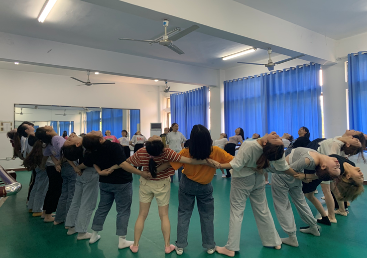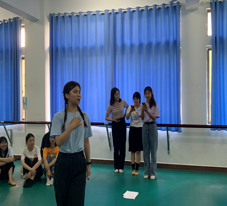 活动在同学们的欢声笑语和热情洋溢的游戏中靓丽的拉开了帷幕,此次活动分为三个部分,第一部分,由郑老师带领大家开展热身游戏——春去秋来花谢花开,几轮游戏下来,大家通过近距离接触,心与心的距离也更近一步。