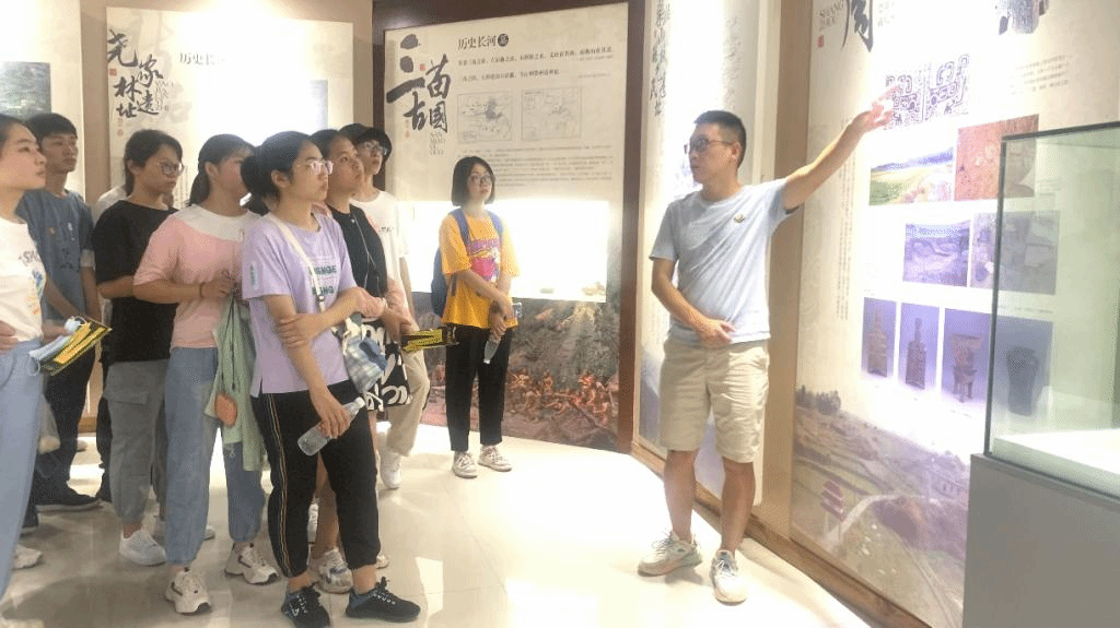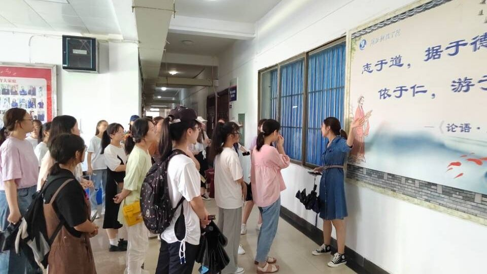 首先,各班在西区食堂门口集合,集合完毕,同学们沿着道路往教学楼方向走,各班班助为新生介绍楼栋及其悠久的历史。随后,带同学们来到了理工楼,重点介绍并让新生参观了best365网页版的琴房,舞蹈房,心理实验室,教学办和学工办等教室。最后,志愿者带领同学们参观鄂南文化中心,展馆门口的牌匾浑然天成。走进展馆,展馆中的作品琳琅满目,厚含文化底蕴,嘉祐对钱、青釉魂瓶、通县铁鼎,无一不彰显鄂南文化的历史悠久,钟灵毓秀。