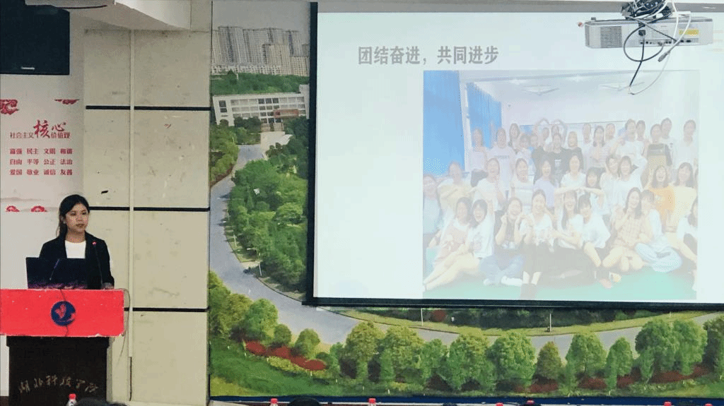 参与国家奖学金竞评的同学从个人学习情况、思想道德、社会实践和创新创业等方面向评委老师汇报自己的收获与实绩。每一位国家奖学金候选人用自己的成长经历告诉大家,成功的路上必然充满荆棘,唯有奋发前行,才能不负时光、不负青春。国家奖学金候选人宣讲完毕后,参与先进班集体评选的班级的学生代表开始上台进行发言。各班代表通过PPT的形式,为评委老师和同学们介绍了本班的组织架构、思想建设、实践活动、师范技能训练、获奖情况等,充分展示了我院学生在班集体这个大家庭中经历的丰富多彩的大学生活与收获的成长。
