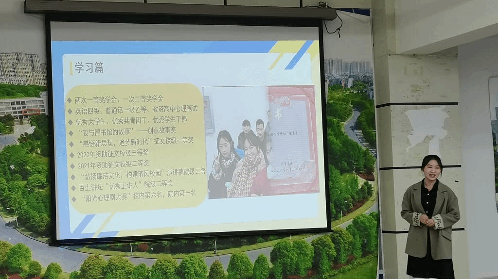 图为国家奖学金候选人杨璐瑕同学宣讲