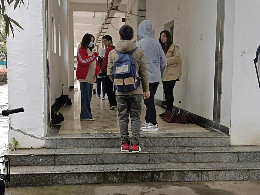 图二为志愿者对拿早餐进入教室的同学进行劝导