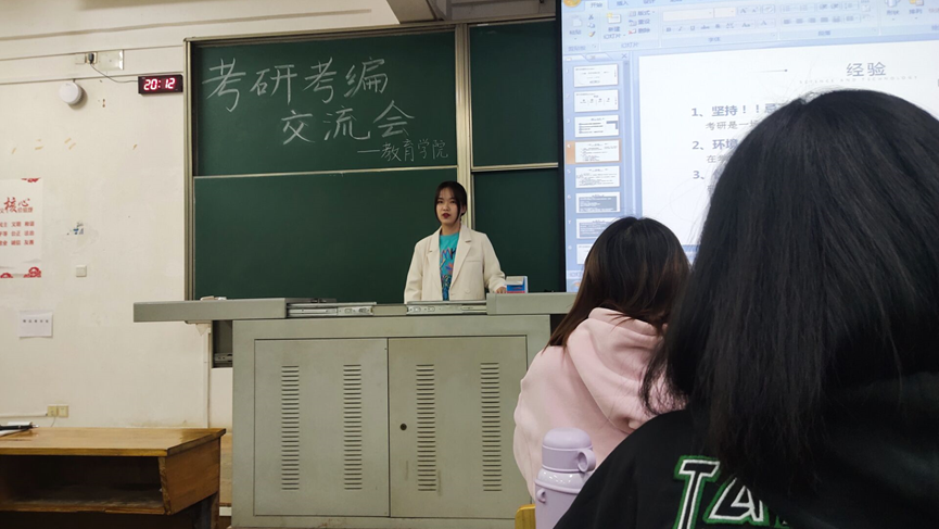 为解决同学们对于考研考编的困惑,帮助同学们了解当前考研考编形势。best365网页版于4月29日晚7:30在教学楼6-202开展考研考编交流会。出席本次考研考编交流会的有娄强老师以及黄颖、刘洁如、胡可意、刘珂、陈诗琪五位考研考编成功的同学。