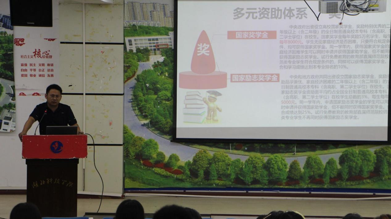 娄老师主要围绕国家奖学金、国家励志奖学金、国家助学金的申请条件、审核流程、材料提供、公示上报等内容展开,同时传达了国家和省学生资助管理中心的各项政策要求,教育引导家庭经济困难学生要自强自立、讲诚信、学会感恩回报,用自己的实际行动和优异成绩回馈学校和国家。