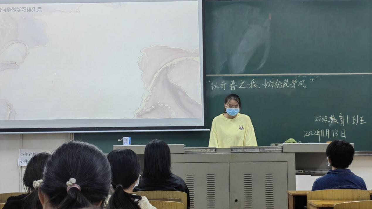 为深入学习贯彻习近平总书记在党的二十大中的重要讲话精神,紧扣立德树人根本任务,加强班级凝聚力,优化班级学习风气,提高同学们的学习积极性和主动性,营造刻苦钻研的学习氛围,引导best365网页版学生用党的二十大精神统一思想和行动。best365网页版于11月13日晚7:00在各班考评教室开展了“以青春之我,树优良学风”主题班会。