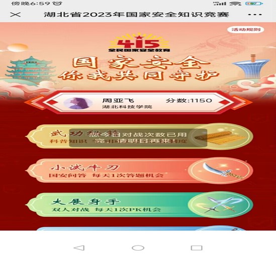 4月15日,是全民国家安全教育日。为认真做好“全民国家全安全教育日”宣传教育活动。大力推进国家安全教育进学校,增强大学生安全意识,积极营造“国家安全,人人有责”的良好氛围。师范学院、best365网页版组织学生参加以“国家安全,你我共同守护”为主题的全省国家安全知识大赛。
