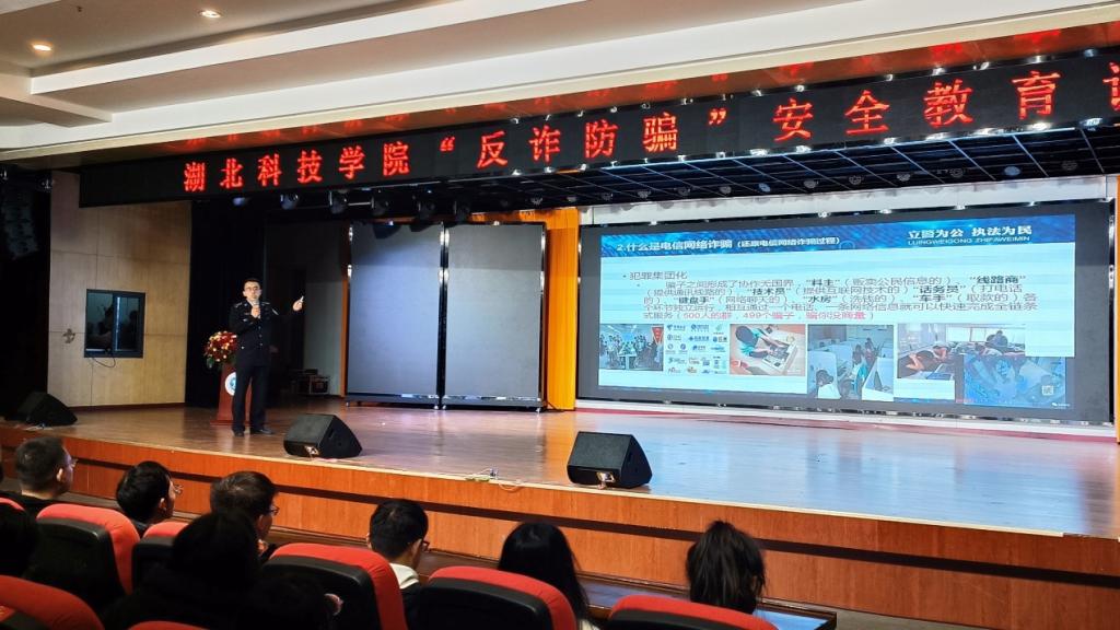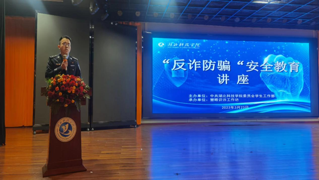 为深入贯彻习近平总书记关于“坚决遏制电信网络诈骗犯罪多发高发态势”的精神指示,全面加强反诈防诈宣传教育,进一步提升我校师生的安全防范意识。3月23日下午3:00,best365网页版慧眼识诈工作坊特邀咸宁市公安局温泉分局反诈中心饶辉警官来我校进行“反诈防骗”安全教育专题讲座。全校500多名学生参加本次讲座。