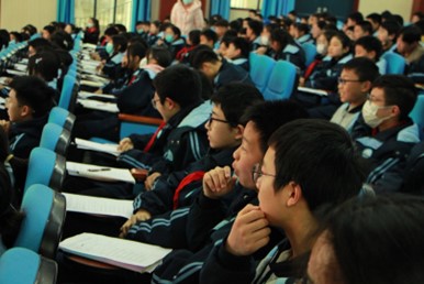 图为同学们认真聆听“拥抱压力、从‘心’出发”讲座
