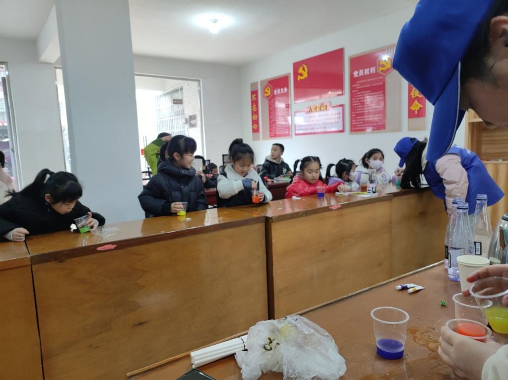 在最后的彩虹小实验中,志愿者们利用自己的专业技能给小朋友们传授知识,小朋友们也都积极参与,认真听讲,每个小朋友都做出了独属于自己的彩虹液体。本次志愿活动收获了家长和社区工作人员的一致好评。