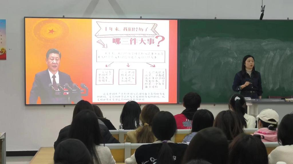 辅导员郑珍老师以“青春向党 奋斗强国”为主题展开。围绕党的二十大主题和主要成果,聚焦十年来发生的三件大事,深刻阐释了党的二十大提出的新思想新论断新要求,引导学生深刻理解党的二十大精神实质。郑老师重点讲解了十年来发生的三件大事以及如何继续推进实践基础上的理论创新,鼓励同学们立足创新,立足人民,树立正确的世界观和方法论,将个人命运和国家命运紧密结合起来,方能不负韶华。