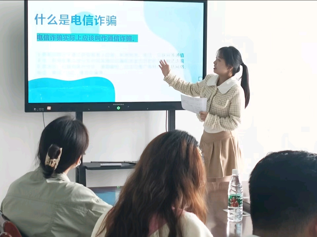 宣讲全部结束后,学工处胡瑶瑶老师对试讲的全体同学给出了整体的指导意见,并希望同学们能够下去整合个人智慧,加强专业术语的学习,提升反诈宣讲的专业性,为学校反诈工作贡献自己的一份力量。 通过此次活动,丰富了大学生人文教育内容,提高了反诈宣讲团的个人宣讲能力,并必将促使他们在今后的校园反诈宣讲中不断打磨,为湖科校园安全贡献新的青春力量。
