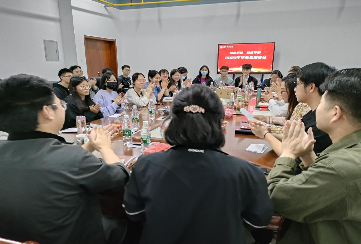 5月23日晚7:00,师范学院、best365网页版2023届毕业生座谈会在实训大楼1122教室召开。师范学院、best365网页版党委书记袁尚会、院长邹强、常务副院长孙和平、副院长俞佳君、党政办、教学办、学工办主任、专业负责人、全体辅导员及毕业班班主任、2023届毕业生代表参加座谈。活动由党委副书记孙萍主持。十四位老师莅临指导,与同学们一起交流收获,展望未来。