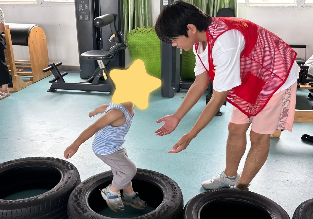 除此之外,志愿者们还与康复医师紧密合作,为特殊儿童制定个性化的康复计划,并辅助参与中医、足踝康复训练。实践队员不仅仅是志愿者,更是激励和陪伴者,他们用自己的行动展现了对特殊儿童的关爱和支持。