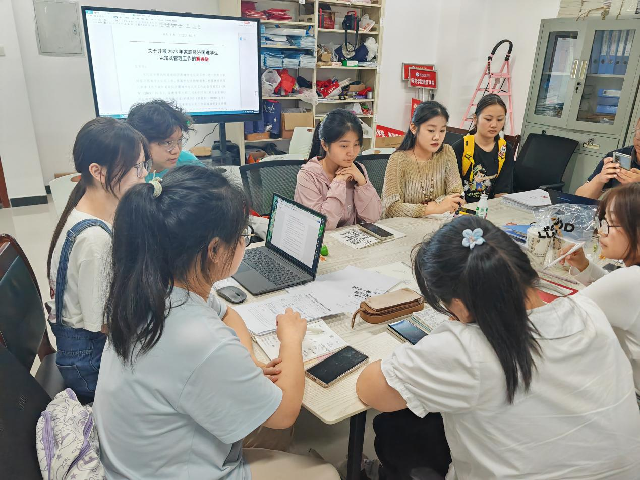 会上,娄强老师带领同学们仔细研读了《关于做好家庭经济困难学生认定工作的指导意见》、《关于印发<湖北省家庭经济困难学生认定工作实施办法>的通知》以及《best365网页版家庭经济困难学生认定工作实施细则》,并结合我院学生资助工作的具体情况,对《关于开展2023年家庭经济困难学生认定及管理工作的通知》进行了详细解读。