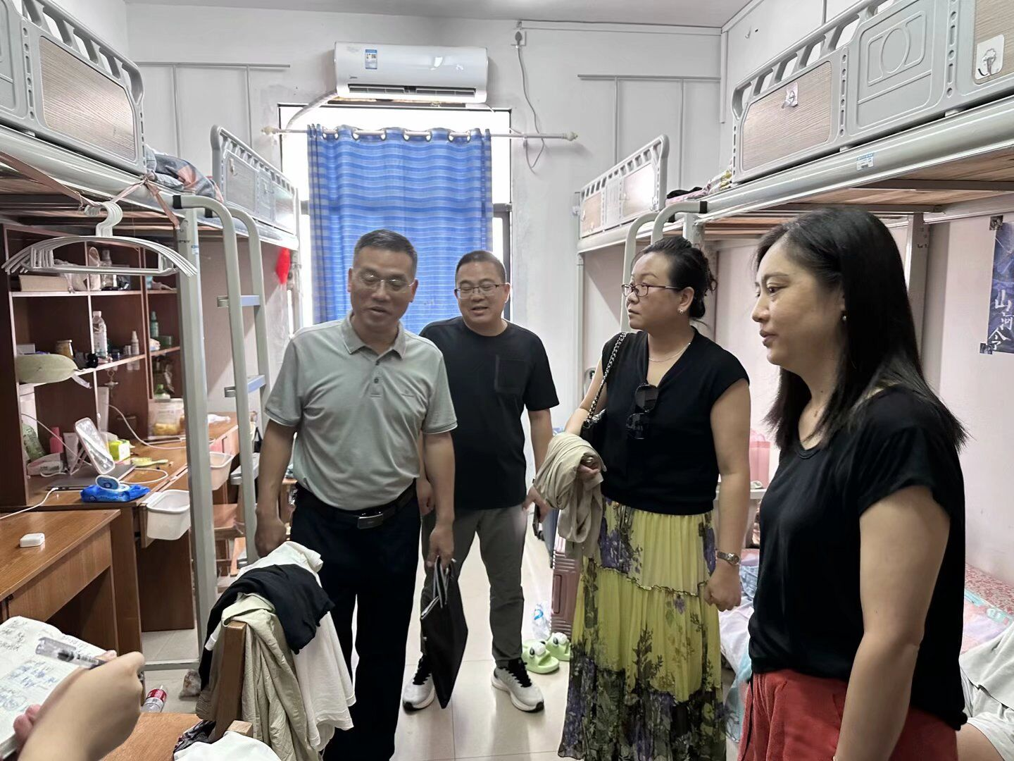 图为老师进行宿舍安全排查