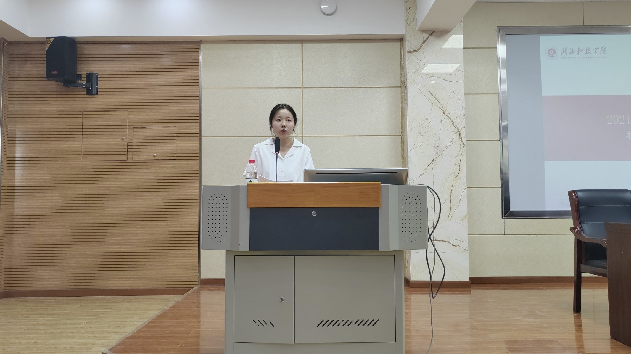 2021级小学教育专业的杜蒙同学作为老生代表上台发言,她向新生分享了自己在学习以及为人处世上的经验,对新生的到来表达了由衷的祝福。她谈到:在学习方面要做到知行合一,坚守初心;在生活方面要培养兴趣,发展特长。
