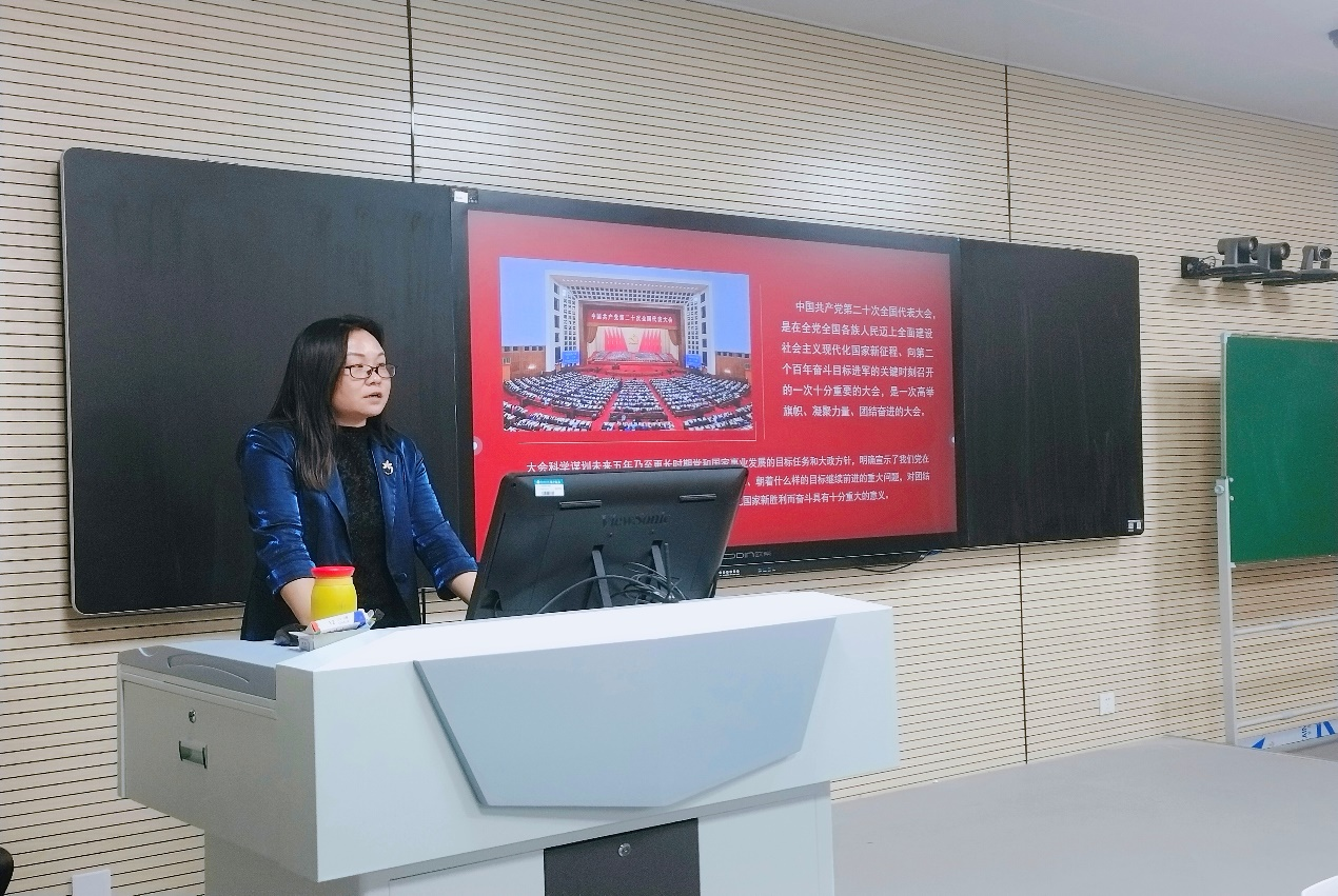孙萍副书记从党的二十大主题、主要成果,马克思主义中国化时代化等七大部分展开,学员们认真倾听的同时做好笔记。首先,讲到了理论创新的根本途径为“两个结合”,即把马克思主义基本原理同中国实际相结合,同中国优秀传统文化相结合。其次,还讲到了中国共产党的中心任务就是团结带领全国各族人民全面建成社会主义现代化强国、实现第二个百年奋斗目标,以中国式现代化全面推进中华民族伟大复兴等。最后,当孙萍副书记抛出一系列二十大相关问题时,大家都积极地分享自己的想法,形成了思想上的沟通和碰撞。