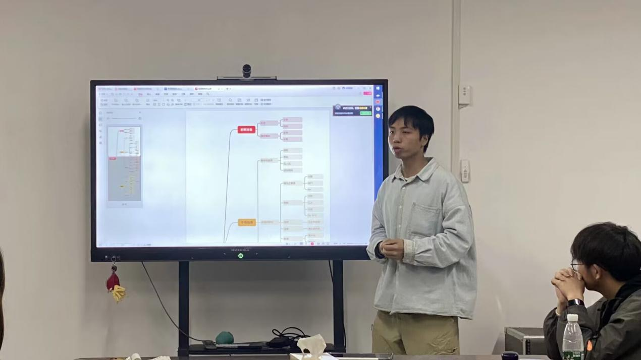 图为新成员进行近期热点分享