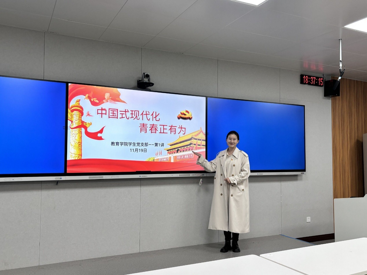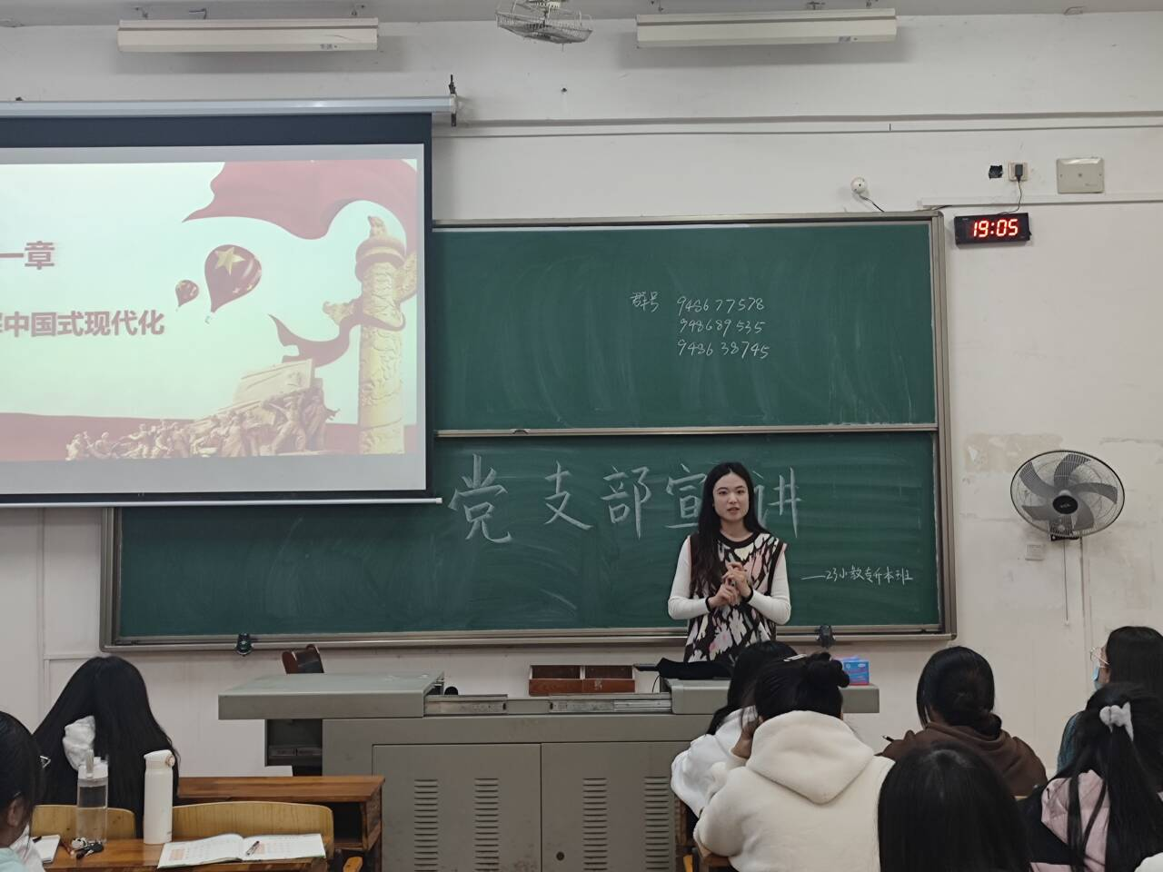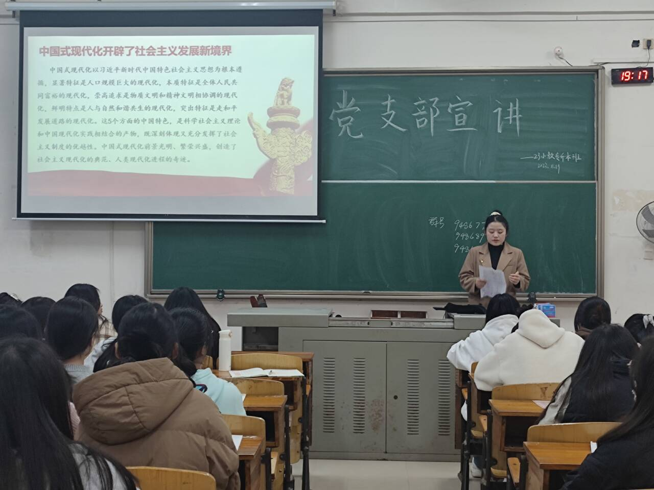 为推进开展学习贯彻习近平新时代中国特色社会主义思想主题教育,best365网页版,best365网页版党支部宣讲团成员于11月19日进各班开展了主题为“中国是现代化道路,青春正有为”的宣讲活动。
