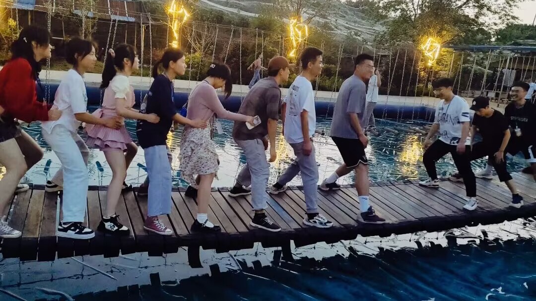 在欢声笑语中,游戏结束。各组成员在自助烧烤拿取需要的食材前往指定区域进行烧烤。大家分工明确,肉香四溢的烧烤一次次冲击着大家的味蕾,伴随着灯光和音乐,大家互相分享着生活中的趣事,幸福与满足洋溢在每个人的脸上。愉快的进餐结束后,有许多同学体验紧张刺激的网红桥。人间烟火处,欢声笑语间,本次团建落幕。