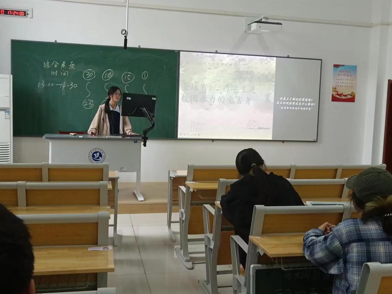 图为心理委员为同学们普及校园霸凌相关法律