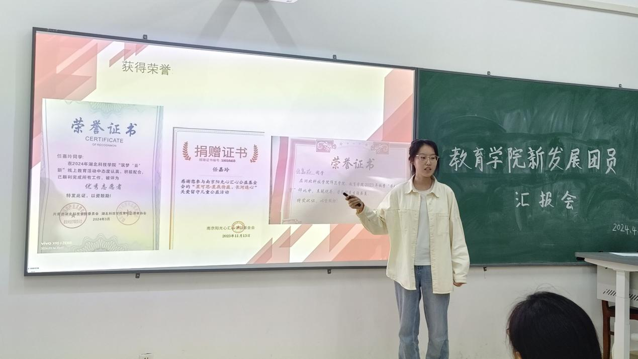 图为 任嘉玲同学个人展示环节