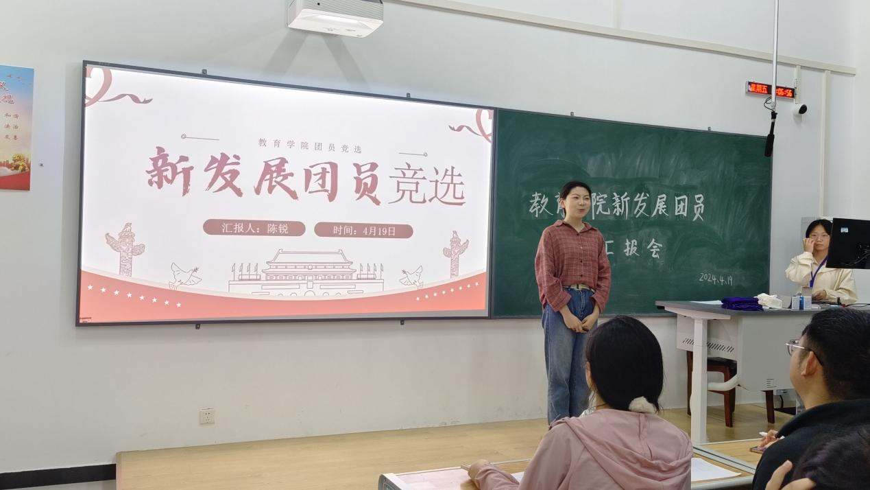 评选伊始,由申请入团的15名同学依次上台进行个人成果汇报,她们从入团动机、对团组织的认识及学习生活等方面进行汇报。评定小组成员结合个人成果、学习成绩、第二课堂学分、志愿服务时长、青年大学习等情况进行综合评定。最终,确定7名同学作为本次新团员发展。