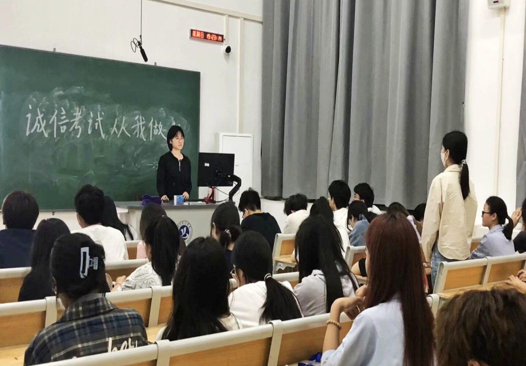 活动开始,各班学习委员带领本班同学学习了《国家教育考试违规处理办法》《学生教育管理规定》等规章制度,并介绍了全国教育考试领域发生的违纪违法典型案例。让同学们以案例为戒,竖起警钟,遵守考试纪律。学习委员还通过播放诚信考试宣传视频,让同学们更加直观地了解到诚信考试的要求和规范。