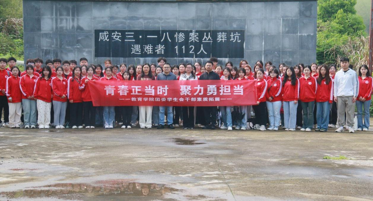 为追溯历史的记忆,缅怀被日军无辜杀害的村民,培养学生热爱祖国的情感,增强爱国主义精神,汲取青春奋进的力量,2023年4月20日上午8:10,best365网页版组织学生参观咸安红色基地活动。best365网页版领导老师和best365网页版团委学生会的干部们参与其中。