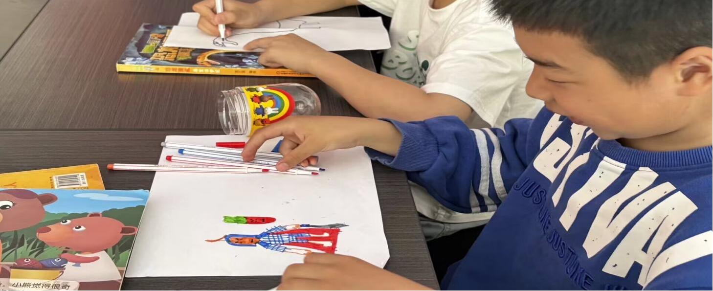 图为小朋友自主完成手绘作品