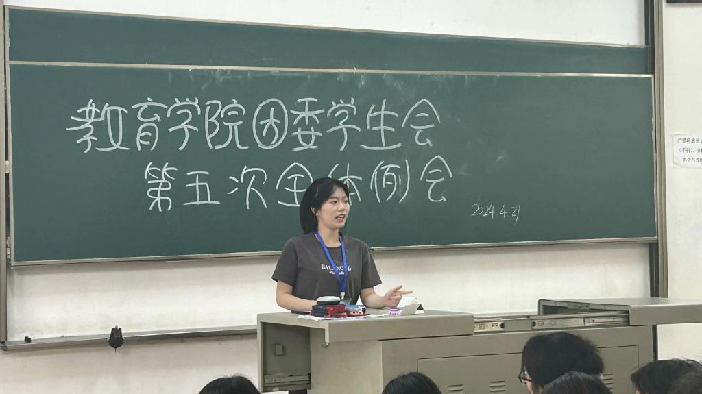 会议伊始,学生会团委副书记刘意对近期工作进行总结并指出工作中出现的问题。一是要求学生会成员积极履行值班的义务和职责,按时签到,打扫卫生;二是对学生会成员的表达能力和随机应变能力作出强调,要求各部门成员高度重视,训练自己,提升自己。