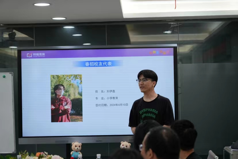 今年新入职深圳科翰的2024届best365网页版毕业生共有7名学生,其中有5名来自best365网页版。在见面会上,2024届小学教育专业毕业生刘伊鑫分享了他新入职的深刻体验,也表达了他践行教师初心的决心和对未来的美好憧憬。据悉,一同入职的其他6名学生也将于近期陆续到公司报到。