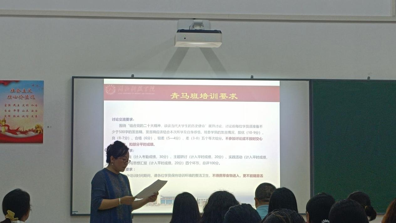 第五项议程,孙萍副书记宣读《第四期青年马克思主义者培养工程实施方案》。她希望新一期青马班学员们以此培训为起点,在今后的学习和生活中不断开拓进取、聚力创优,激发内在潜能,做有责任、有抱负的时代青年,在“自主”的氛围中获得成长的力量。