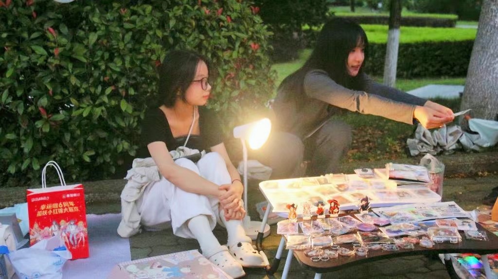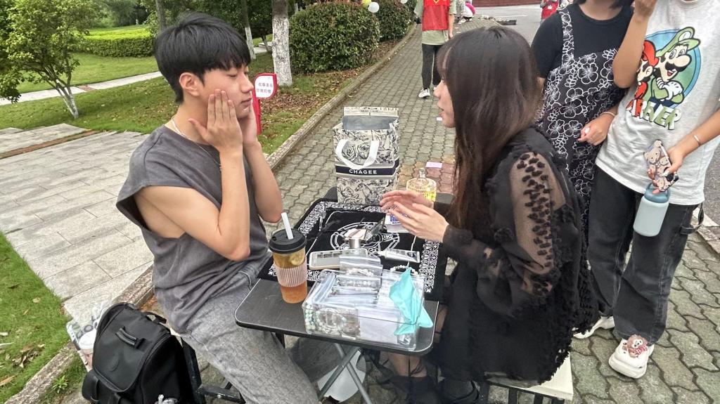 除了手工艺品和文化创意产品,夜市还提供了许多有趣的互动体验。占卜塔罗牌摊位前,许多同学前来寻求未来的指引,体验神秘的占卜文化;星缘月考坊盲盒摊位则提供了一种全新的购物体验,同学们可以通过购买盲盒来获取神秘的礼物,增加了购物的乐趣和惊喜。同学们在夜市中结识志同道合的朋友,分享彼此的创意和想法,增进彼此之间的了解和友谊。