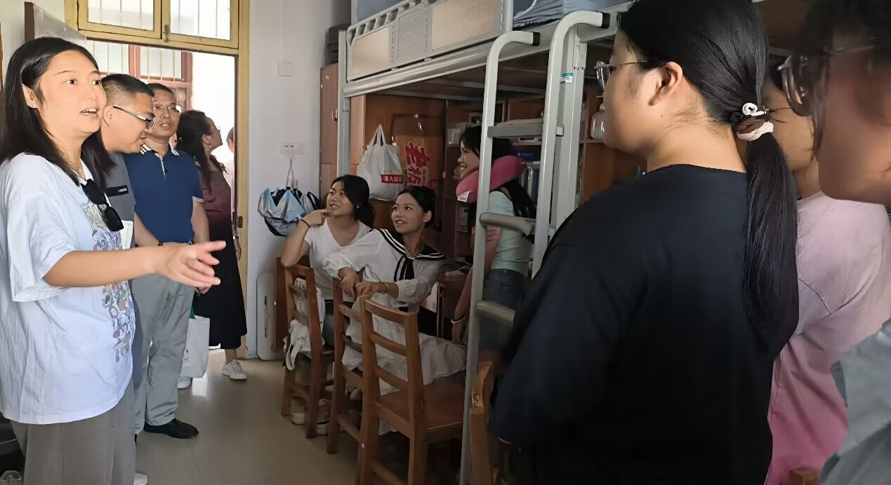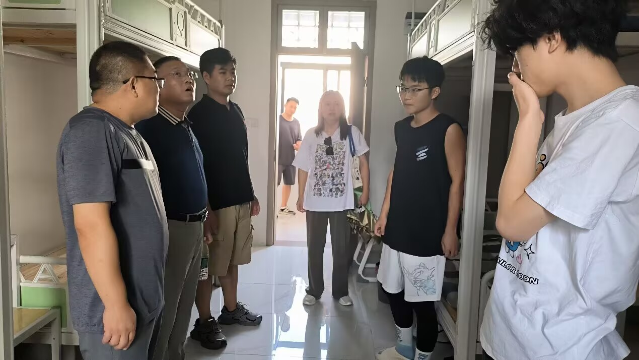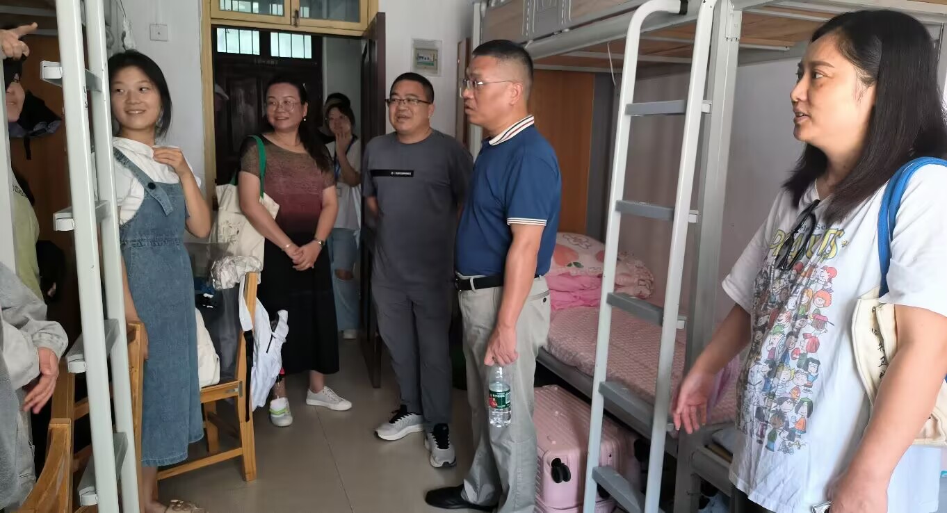 老师们对每个寝室都十分关怀。在下寝中,老师与学生亲切地交谈,询问他们的入校近况。对于新生的新环境适应,宿舍用电安全等问题十分关切。