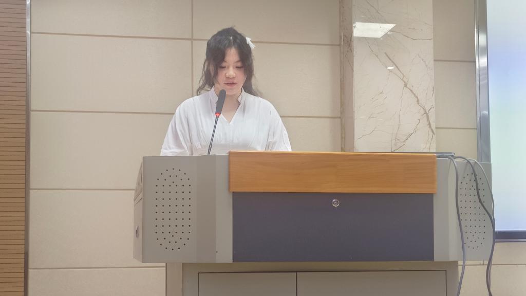 2022级小学教育二班的刘奥凡同学作为老生代表进行发言。她作为院学生会的副主席,为大家分享自身的经验的同时,也鼓励同学们在大学期间要努力学习,积极参加各种社会实践活动,不断提升自己的综合素质,为将来的人生打下坚实的基础。