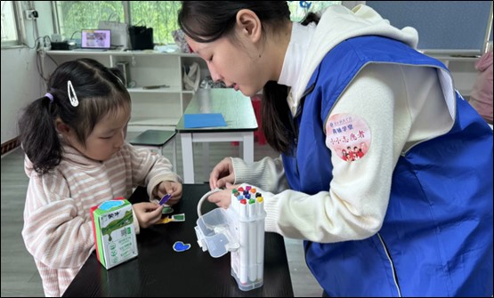 动手制作环节,孩子们化身为小小魔术师,用彩笔、卡纸、超轻黏土等材料,将废旧牛奶盒改造成创意十足的手工作品。志愿者们在一旁协助,共同见证了一个又一个作品的诞生。