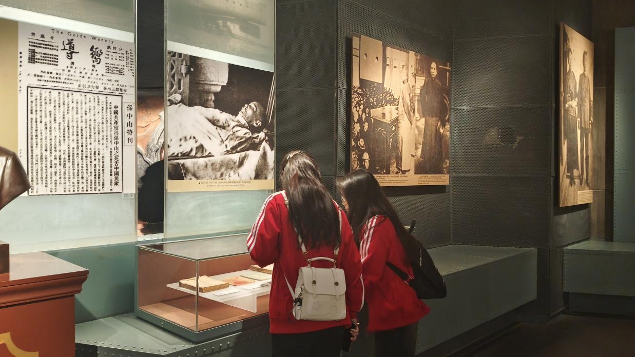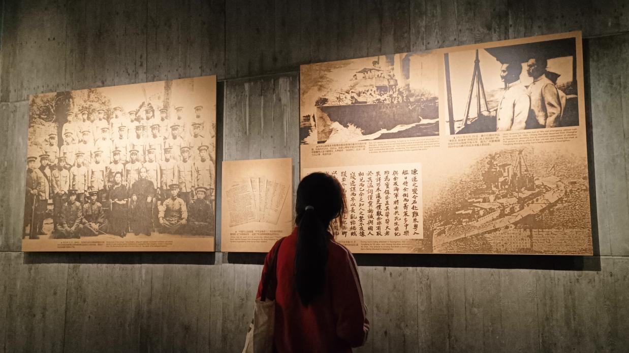 图为 青马班学员观看中山舰发展史