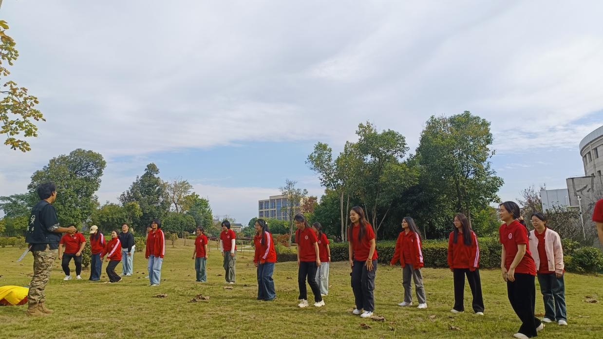 参观结束后,青马班还组织了一场丰富多彩的素质拓展活动。同学们被随机分成三个小组,在教练的带领下参与了多个趣味游戏和互动环节。这些活动不仅考验了同学们的观察力、应变力和团队协作能力,更让他们在互帮互助、集思广益中加深了友谊,提升了默契。