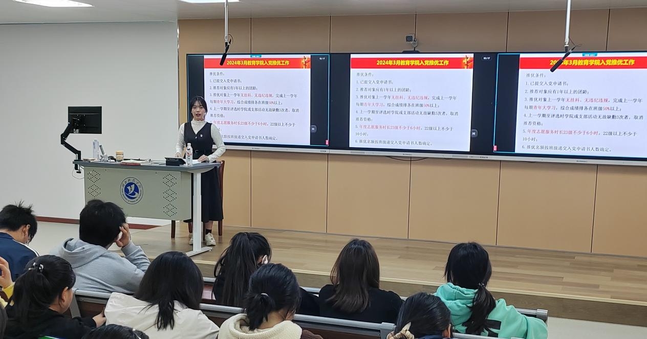 为深入贯彻党的教育方针,加强对大学生的理想信念教育,引导广大青年学子积极向党组织靠拢,2024年11月15日,由best365网页版学生党支部开展的“青春向党,启航新征程”大学生入党流程专题讲座在教3-302成功举办。本次讲座旨在帮助大学生全面了解入党流程,明确入党条件,激发政治热情,为党组织培养更多优秀的青年人才。